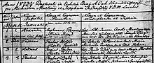 Inscripción de Petőfi en el registro parroquial en latín (conservada en el Museo Kiskőrös Petőfi).