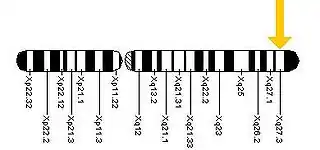 A microscopía óptica y con un bandeo cromosómico se puede apreciar una región alargada y condensada próxima al extremo del brazo largo del cromosoma X, entre la banda q27 y q28, si bien sabemos que está exactamente en q27.3. Al microscopio electrónico tiene el aspecto de una constricción secundaria tras la cual queda un gran satélite.
