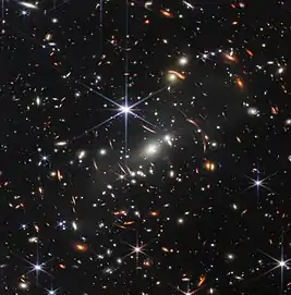SMACS J0723.3-7327 es un cúmulo de galaxias con una distancia comóvil de 5.120 millones de años luz, dentro de la constelación austral de Volans (RA/Dec = 07 h 23 m 21 s, -73°26′21″).[1][2][3][4] Es un trozo de cielo visible desde el hemisferio sur de la Tierra y, a menudo, es visitado por el Hubble y otros telescopios en busca del pasado profundo.[5] Fue el objetivo de la primera imagen a todo color revelada por el telescopio espacial James Webb, obtenida con el NIRCam, con espectros incluidos, que muestran corrimiento al rojo que implican objetos de 13 100 millones de años de antigüedad. Ha sido observado previamente por el telescopio espacial Hubble como parte de la Estudio Masivo de Cúmulos del sur (SMACS),[6] así como por Planck[7] y Chandra.[8]