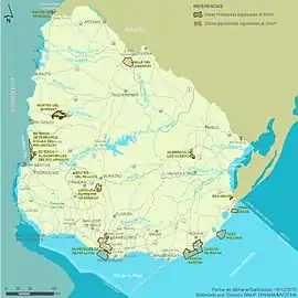 ![]() | 1994 | 25 de noviembre de 2014 | Montes del Queguay | Decreto n.º 343/014[15] | Área protegida con recursos manejados | 43.410 ha | ||