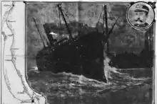 "El Columbia, un buque de casco de hierro, llevó la peor parte del impacto, y sus placas de hierro - frágiles con la edad - agrietada y el corte, de dos metros a través de la escotilla de proa, permite el ingreso libre de agua."