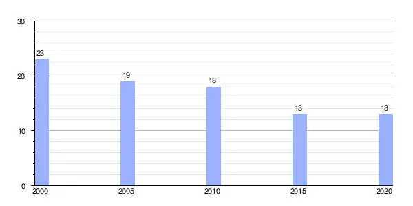 | Gráfica de evolución demográfica de Saa (aldea) entre 2000 y 2020 |