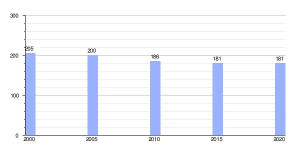 | Gráfica de evolución demográfica de Saá (parroquia) entre 2000 y 2020 |