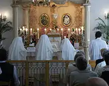 Varios católicos han escrito a favor de la ordenación de mujeres.[75] Grupos disidentes que abogan por la ordenación de mujeres en oposición a la enseñanza católica[76] incluyen la ordenación de mujeres en todo el mundo, la ordenación de mujeres católicas.[77][78][79] Algunos citan la supuesta ordenación de Ludmila Javorová en la Checoslovaquia comunista en 1970 por el obispo Felix Maria Davídek (1921–1988), él mismo consagrado clandestinamente debido a la escasez de sacerdotes provocada por la persecución estatal, como precedente.[80] La Iglesia Católica trata los intentos de ordenación de mujeres como inválidos y automáticamente excomulga a todos los participantes.[81]