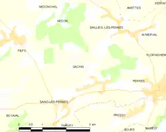 Sachin es una población y comuna francesa, situada en la región de Norte-Paso de Calais, departamento de Paso de Calais, en el distrito de Arras y cantón de Heuchin.