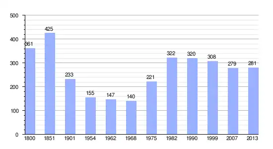 Los datos demográficos contemplados en este gráfico de la comuna de Saint-Amand-des-Hautes-Terres[4] se han cogido de 1800 a 1999 de la página francesa EHESS/Cassini, y los demás datos de la página del INSEE.[5]