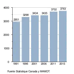 b. Statistique Canada, Profils des communautés de 2001 : Saint-André-Avellin, Ottawa. 01/02/07. Consultado el 15 de mayo de 2015. (en francés)