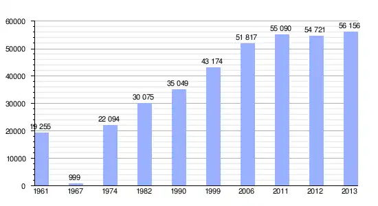 | Gráfica de evolución demográfica de Saint-André (Reunión) entre 1961 y 2013 |