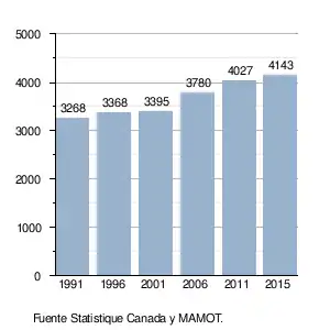 b. Statistique Canada, Profils des communautés de 2001 : Saint-Antonin, P, Ottawa. 01/02/07. Consultado el 20 de octubre de 2015. (en francés)