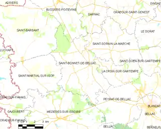 Saint-Bonnet-de-Bellac (en occitano Sent Bonèt de Belac[3]) es una localidad y comuna de Francia, en la región de Lemosín, departamento de Alto Vienne, en el distrito y cantón de Bellac.