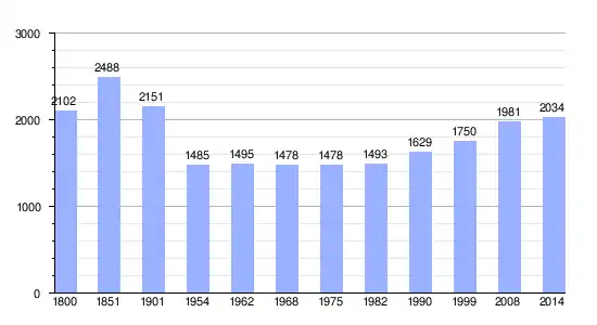 | Gráfica de evolución demográfica de Saint-Bonnet-en-Champsaur entre 1800 y 2014 |
