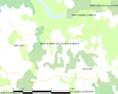 Saint-Bonnet-les-Tours-de-Merle (en occitano Sent Bonet[3]) es una comuna y población de Francia, en la región de Lemosín, departamento de Corrèze, en el distrito de Tulle y cantón de Mercoeur.
