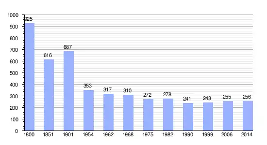 Los datos demográficos contemplados en este gráfico de la comuna de Saint-Georges-de-Lévéjac[4] se han cogido de 1800 a 1999 de la página francesa EHESS/Cassini, y los demás datos de la página del INSEE.[5]