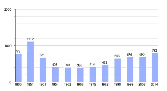 | Gráfica de evolución demográfica de Saint-Maurice-du-Désert entre 1800 y 2014 |