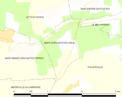 - Situación de Saint-Ouen-de-Pontcheuil en un mapa de Francia y de comunas limítrofes (en francés)