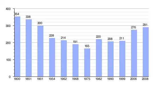 Los datos demográficos contemplados en este gráfico de la comuna de Saint-Quentin-lès-Beaurepaire[4] se han cogido de 1800 a 1999 de la página francesa EHESS/Cassini, y los demás datos de la página del INSEE.[5]