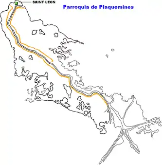 Localización de Saint Leon en el mapa de la Parroquia de Plaquemines.