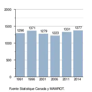b. Statistique Canada, Profils des communautés de 2001 : Sainte-Brigide-d'iberville, Ottawa. 01/02/07. Consultado el 14 de enero de 2014. (en francés)