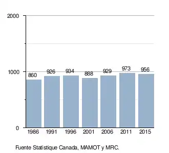 Evolución de la población total, Sainte-Justine-de-Newton, 1986-2015[1][5][10]