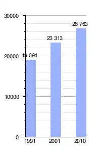 | Gráfica de evolución demográfica de Saladillo entre 1991 y 2010 |