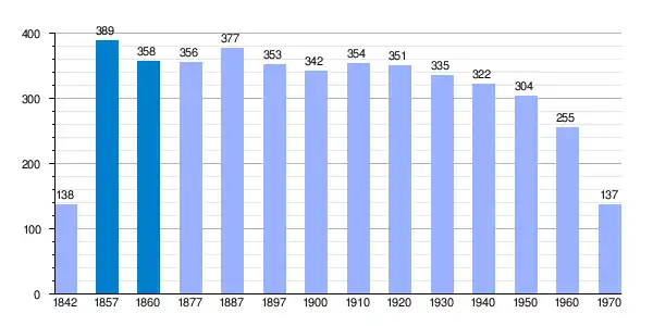 | Gráfica de evolución demográfica de Salazar de Amaya[8] entre 1842 y 1970 |