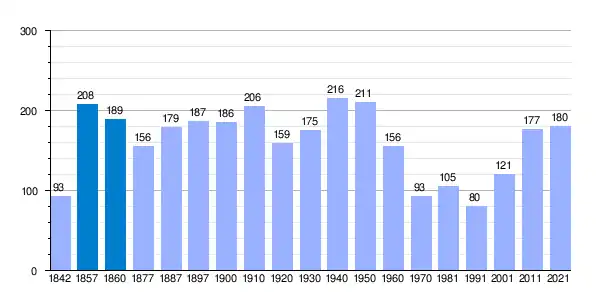 | Gráfica de evolución demográfica de Saldaña de Burgos[3] entre 1842 y 2021 |