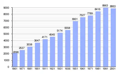 | Gráfica de evolución demográfica de Salice Salentino entre 1861 y 2001 |