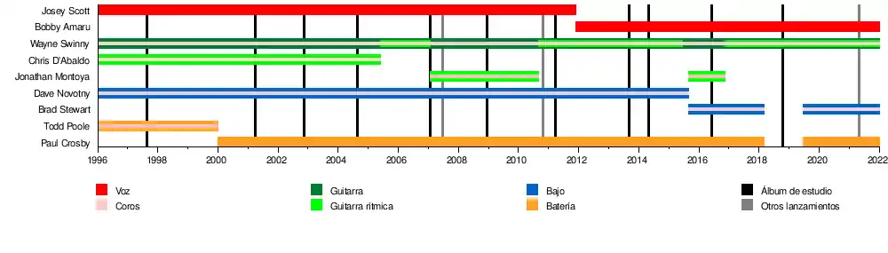 Dave Novotny Josey Scott Chris D'ABaldo Todd Poole Jonathan Montoya Wayne Swinny (fallecido) | ||