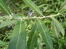 - Salix × stipularis híbrido entre Salix atrocinerea y Salix viminalis