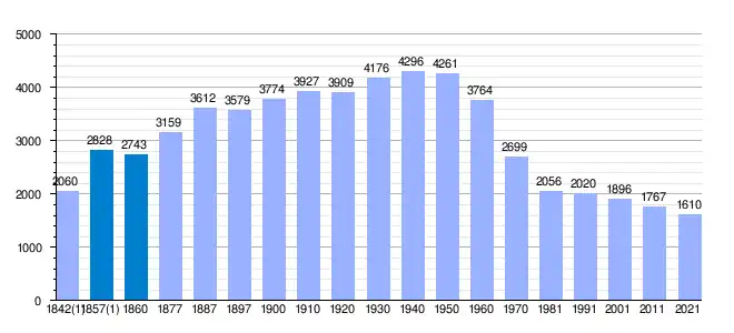| Gráfica de evolución demográfica de Salvatierra de los Barros[4] entre 1842(1) y 2021 |