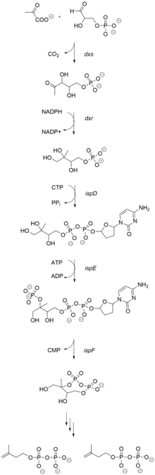 - Kutrzeba L, Dayan FE, Howell J, Feng J, Giner JL, Zjawiony JK (July 2007). «Biosynthesis of salvinorin A proceeds via the deoxyxylulose phosphate pathway». Phytochemistry 68 (14): 1872-1881. PMC 2065853. PMID 17574635. doi:10.1016/j.phytochem.2007.04.034.