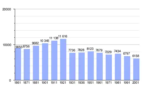 | Gráfica de evolución demográfica de Sambuca di Sicilia entre 1861 y 2001 |