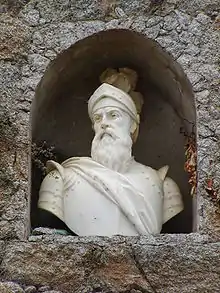 ![]() Busto de Sampiero en la fachada de su casa de Vico, en la comuna de Santa-Maria-Siché | ||