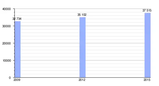 | Gráfica de evolución demográfica de San-Yago entre 2009 y 2015 |