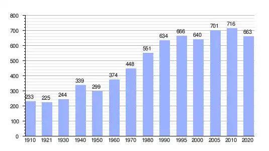 Población de los censos y conteos del Instituto Nacional de Estadística y Geografía (INEGI) de 1930 a 2010.[6] |