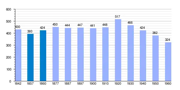 | Gráfica de evolución demográfica de San Andrés de Soria[6] entre 1842 y 1960 |