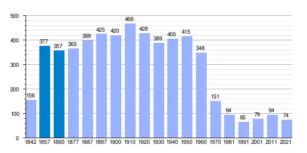 | Gráfica de evolución demográfica de San Andrés del Congosto[3] entre 1842 y 2021 |