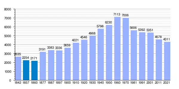 | Gráfica de evolución demográfica de San Andrés y Sauces[38] entre 1842 y 2021 |