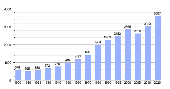 En 2020 registró una población de 3607 personas, lo que corresponde al 9.80 % de la población municipal.[7] De los cuales 1741 son hombres y 1866 son mujeres.[7]
