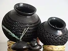 El barro negro de Coyotepec viene de inmediato a la mente al mencionar la alfarería de Oaxaca. Es uno de los pueblos alfareros más famosos de México. También es el más grande de Oaxaca, con unos 700 hogares produciendo activamente.[4]