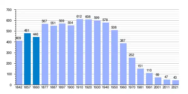 | Gráfica de evolución demográfica de San Bartolomé de Béjar[2] entre 1842 y 2021 |