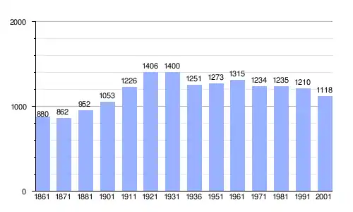 | Gráfica de evolución demográfica de San Bartolomeo Val Cavargna entre 1861 y 2001 |