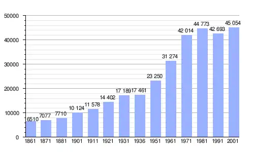 | Gráfica de evolución demográfica de San Benedetto del Tronto entre 1861 y 2001 |