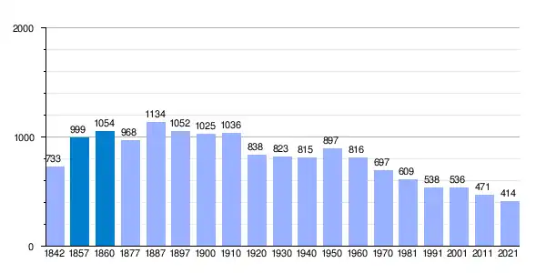 | Gráfica de evolución demográfica de San Cebrián de Campos[3] entre 1842 y 2021 |