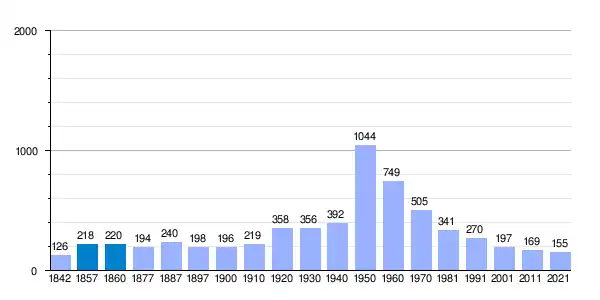 | Gráfica de evolución demográfica de San Cebrián de Mudá[3] entre 1842 y 2021 |