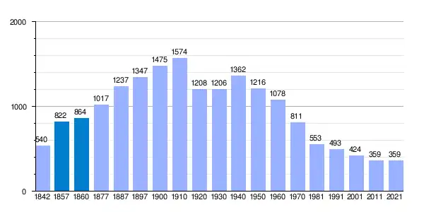 Según el censo de 2021 cuenta con una población de 357 habitantes, de los cuales 187 son varones y 178 son mujeres, en una superficie de 20,83 km². Su altitud es de 623 m sobre el nivel del mar.