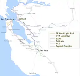 El Norte de la Bahía es la única sección del área de la bahía que no está atendido por un servicio de tren. La falta de servicios de transporte se debe principalmente a la falta de masa de población en el Norte de la Bahía, y el hecho de que se separa completamente del resto del área de la bahía por el agua, los puntos de acceso sólo está el puente Golden Gate de San Francisco al condado de Marin, el puente de Richmond-San Rafael a San Rafael, el puente de Carquinez de Vallejo, el puente de Benicia-Martínez y el puente de Antioch.