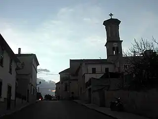 Calle de San Jorge con el atardecer de fondo.