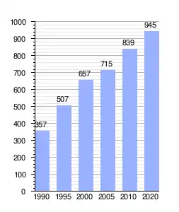 | Gráfica de evolución demográfica de San José entre 1990 y 2020 |