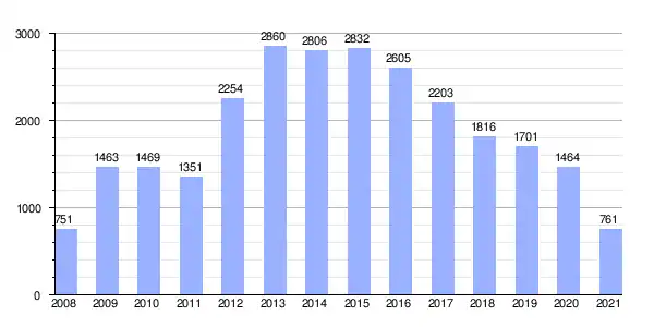 Desde principios del siglo XXI se ha venido observando un importante aumento poblacional debido a que la localidad se ha convertido en ciudad dormitorio de la capital. Número de habitantes en los últimos diez años: